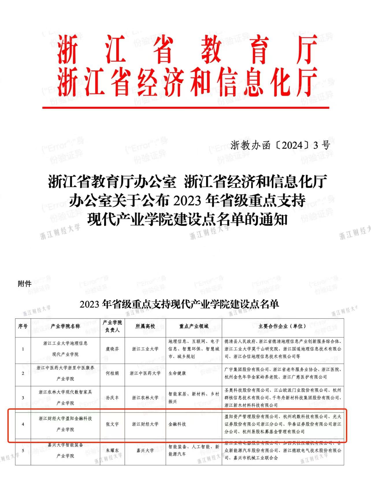 2024年1月11日,浙江省教育厅、浙江省经济和信息化厅印发了《关于公布2023年省级重点支持现代产业学院建设点名单的通知》,微密猫