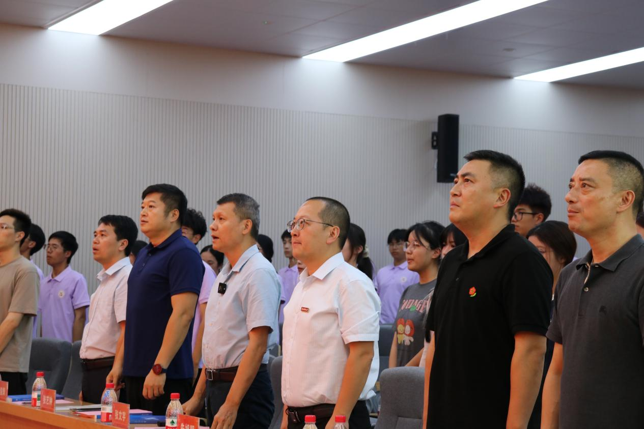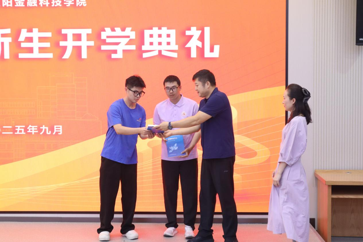 2025级新生开学典礼隆重举行。盈阳金融科技学院理事会理事、楼佳雏鹰奖学金发起人王坚磊,长城证券财富管理总部副总经理张艺钟,长城证券财富管理总部投教负责人邓燕,院党委书记朱旭明,院长张文宇,副院长傅俊辉、孔繁岗,班主任老师,学院教师、学生代表,2025级全体新生出席开学典礼。典礼由学院党委副书记陈思佳主持。
