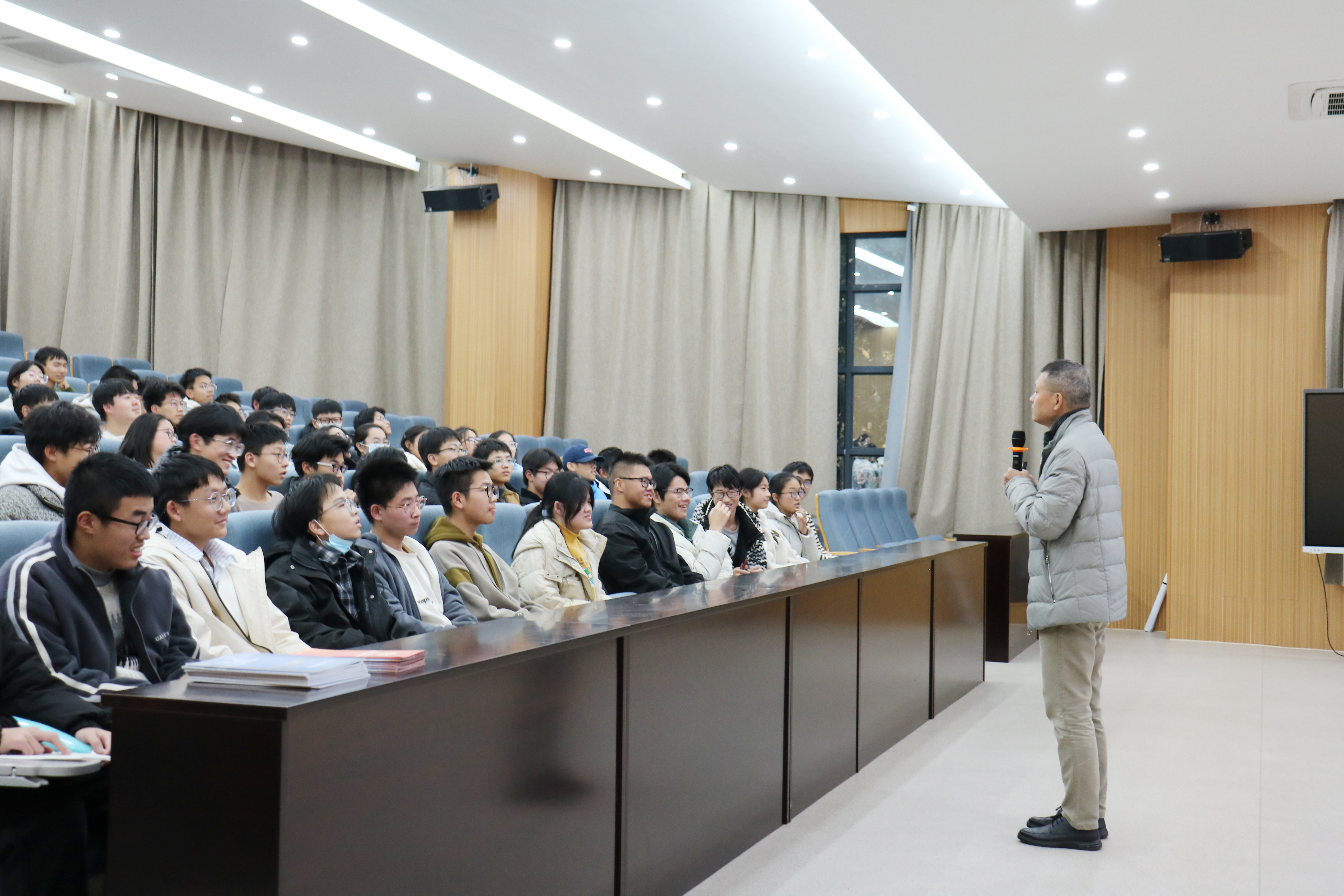 同时他还介绍了自己培养研究生的实践成果,其课题组近5年毕业的28名研究生中,24人考入985/211及海外名校读博,85%的名校升博率让学子们深受鼓舞,并以“吃的是数字科技的佳肴,喝的是人性光辉的琼浆,玩的是人机融合智能,乐的是成为更好的自己并创造更好的世界!”的“吃喝玩乐”箴言,为学子们指明了跨学科学习的进阶方向。