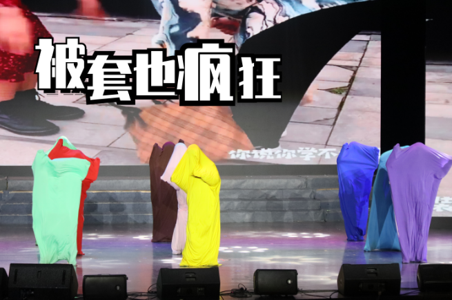 趣味舞蹈《被套也疯狂》恰恰证明盈阳学子的活力热情不会任何事物掩盖,23金融数学(金融科创)的学生代表身披被套,用简单有趣的动作重现影视经典与风靡舞蹈。
