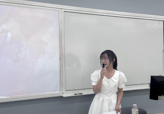 23金融数学(金融科创)班冯帅茗同学讲述了亲历外公离去的个人感受与自我成长,让在场听众感受到,要珍惜与亲人相处的时光,学会用言语和行动去传递爱与关怀。
