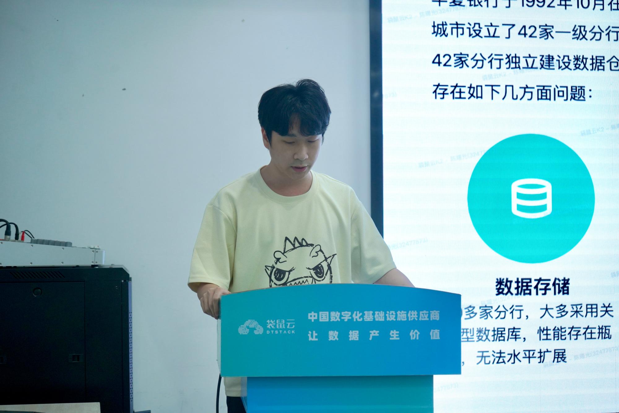 袋鼠云金融事业部项目经理森屿和数据开发工程师行星为学生们进行了公司产品和业务的讲解,详细介绍了袋鼠云三大业务体系,包括:一站式大数据基础软件“数栈”、低代码数字孪生“易知微”、可观测运维“云掣”等,及它们在金融、先进制造、交通等行业的广泛应用。