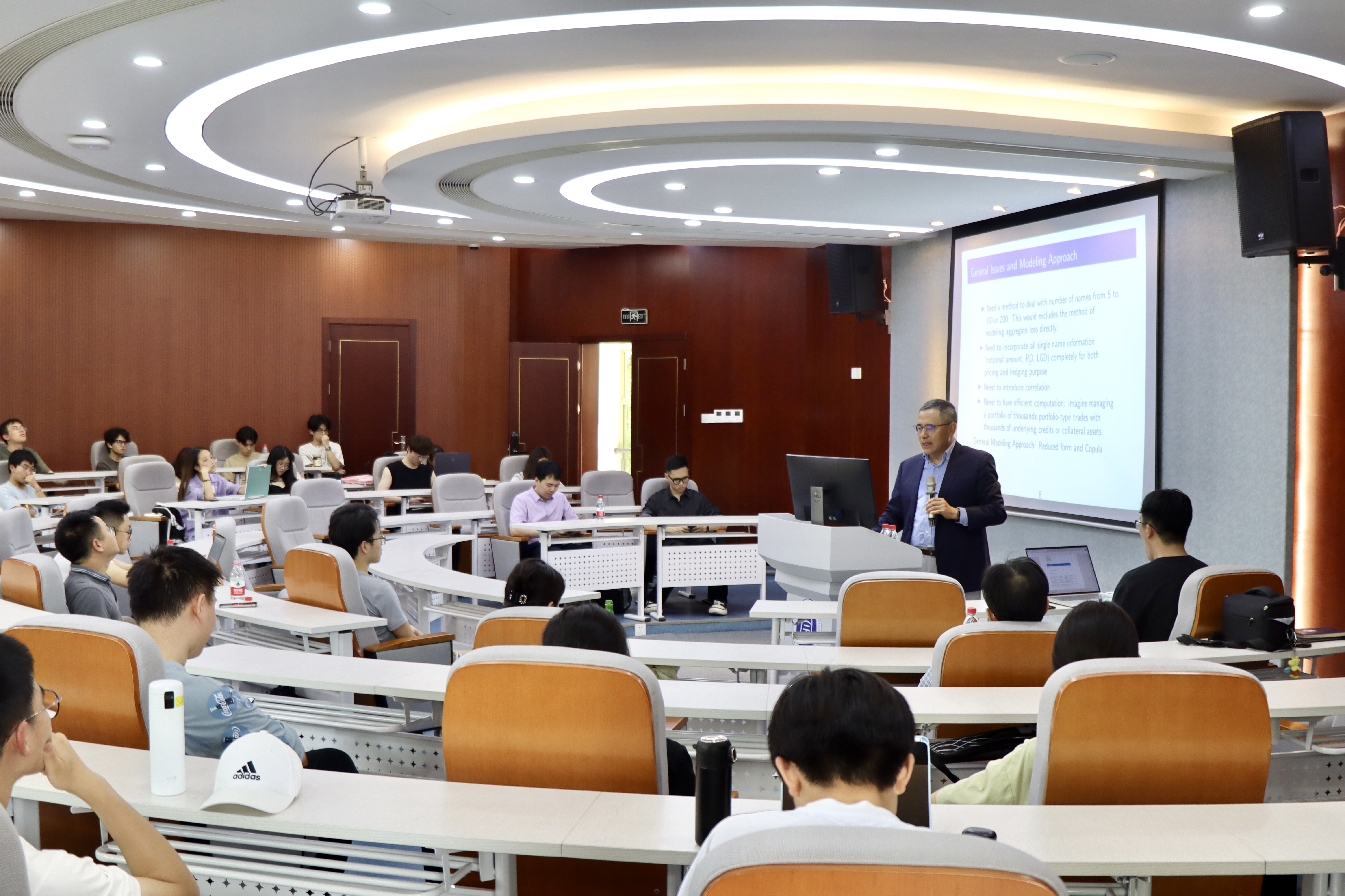 讲座伊始,李祥林介绍了风险中性定价的基本原理及其在金融领域的重要性,分享了关于“如何在组合层次上管理信用风险”这一业界重要问题的看法。他提出,在金融风险管理中,对信用风险组合进行准确定价是至关重要的,而风险中性定价方法提供了一种有效的解决方案。