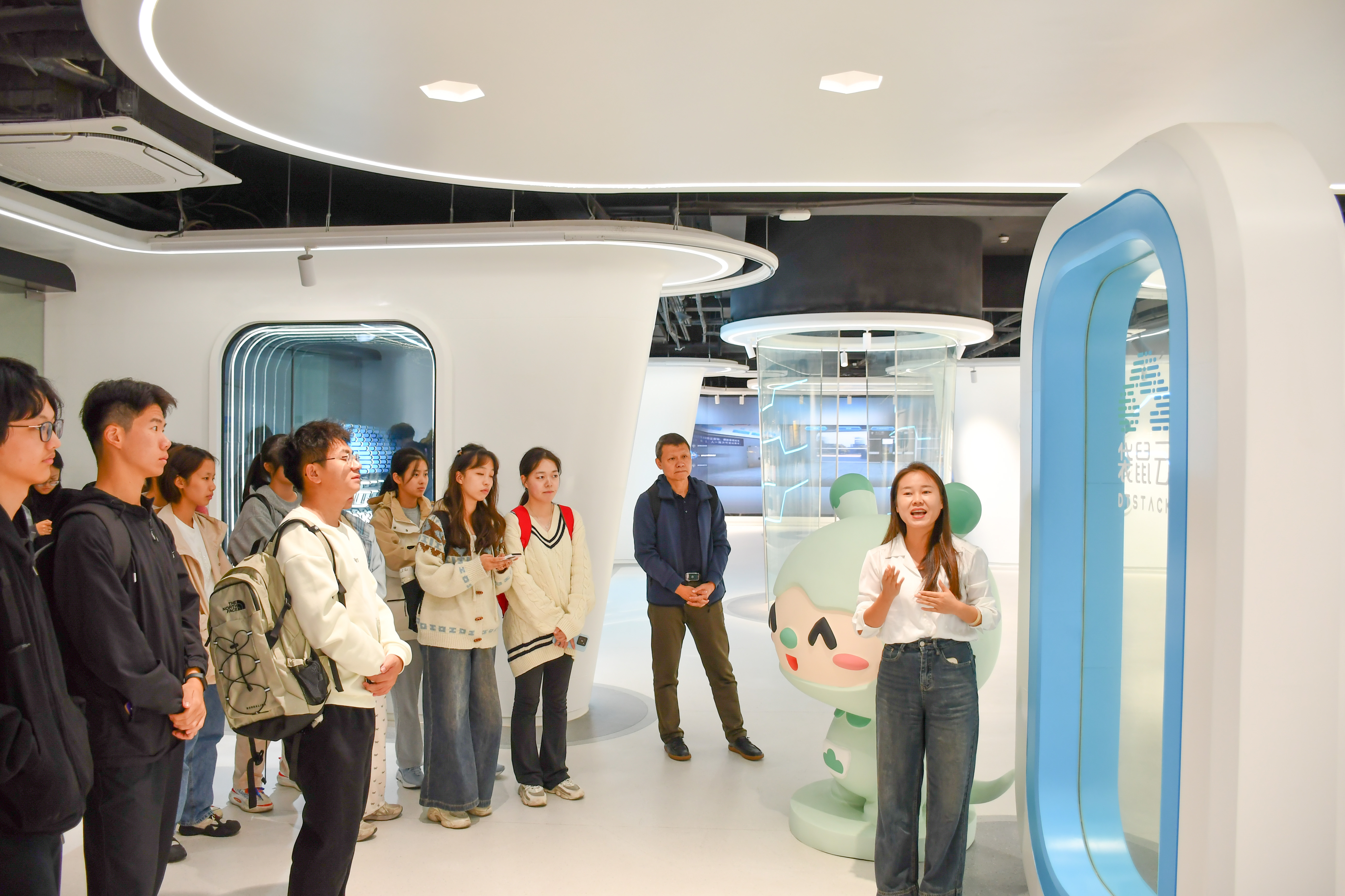 袋鼠云政府事务部高级经理古丽(花名)带领同学们参观了袋鼠云的展厅。各种新颖的数字化产品的呈现,让同学们深刻感受到了数字化转型的奥秘。