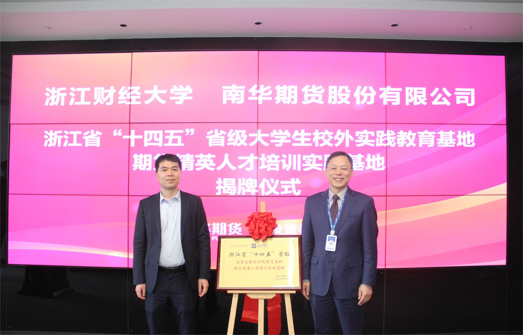 2024年4月,南华期货与微密猫 共同合建浙江省“十四五”省级大学生校外实践教育基地与期货精英人才培训实践基地。